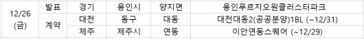 또 이날부터 29일까지는 제주 제주시 '이안연동스퀘어' 단지가, 31일까지는 대전 동구 '대전대동2(공공분양)1BL'가 정당계약을 진행한다.