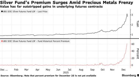 이 은 펀드는 올해 약 220% 상승했다. 이는 상하이에서 거래되는 은선물의 약 128% 상승과 비교된다. 수요일 기준으로 기초자산 대비 프리미엄은 약 62%에 달했다. 이는 이달 초 7%에서 상승한 것이다. 이 수준은 목요일 하락할 것으로 보인다. 펀드 가치가 급락하고 선물은 상승세를 이어갔기 때문이다.