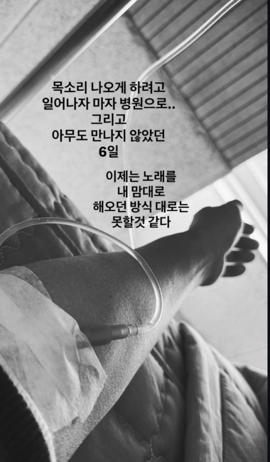 이어 “이제는 노래를 내 맘대로 해오던 방식대로는 못할 것 같다”는 문장을 덧붙이며, 현재의 컨디션과 향후 활동에 대한 고민을 담담하게 전했다. 얼굴을 드러내지 않은 사진과 절제된 문장은 상황의 심각함을 과장하기보다, 가수로서 자신의 상태를 기록하듯 남긴 인상이다.