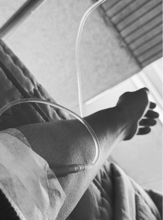 가수 윤종신이 병원에서 링거를 맞고 있는 근황을 공개했다.사진=김영구 기자 |