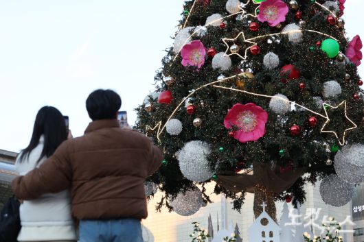 크리스마스인 25일 서울 중구 서울광장을 찾은 시민들이 즐거운 시간을 보내고 있다. 류영주 기자 |