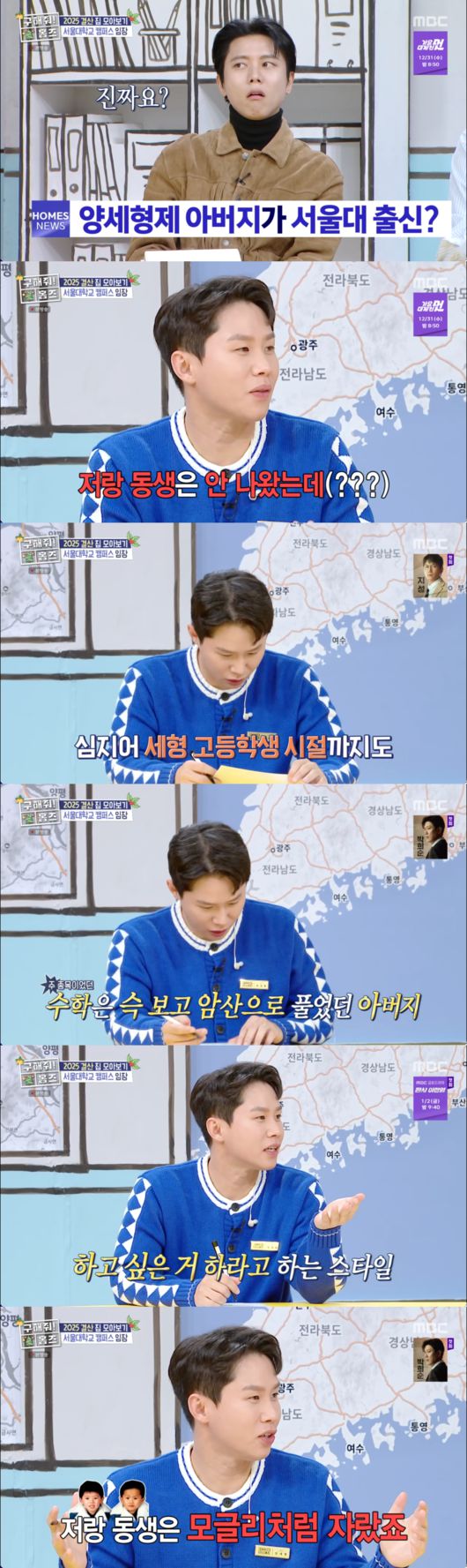 [OSEN=박근희 기자] '구해줘! 홈즈’ 개그맨 양세형이 아버지가 서울대 출신이라는 놀라운 반전 가정사를 공개했다.