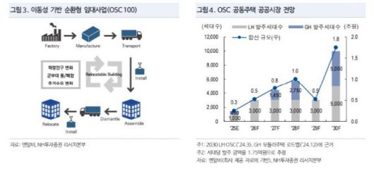 이은상 NH투자증권 연구원은 “모듈러 공법은 공기를 약 30% 단축하고 자재의 80% 재활용이 가능해 공기 지연과 환경 문제의 실질적 해법으로 부상했다”며 “공공주택 공급 확대와 관련 특별법 제정으로 정책적 우호 환경이 조성되고 있고, 엔알비는 국내 유일의 모듈러 고층화 기술과 제작 전 과정 내재화를 통해 경쟁 우위를 확보했다”고 설명했다.