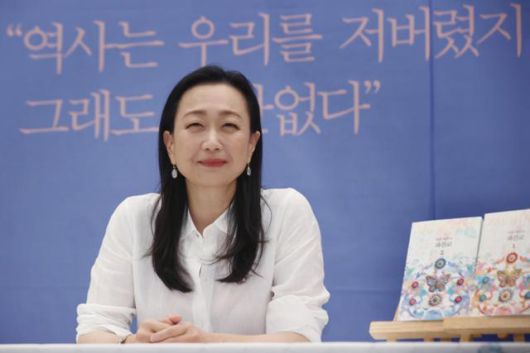 장편소설 '파친코'를 쓴 재미교포 작가 이민진이 2022년 8월 서울 중구 프레스센터에서 열린 기자간담회에 앞서 인사말을 하고 있다. 연합뉴스 |