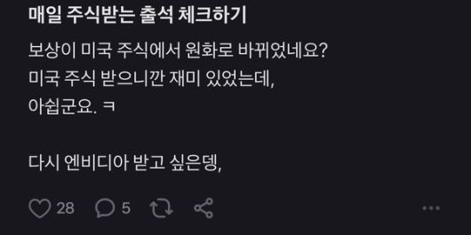 한 개인 투자자는 "미국 주식을 받는 재미가 있었는데 아쉽다"며 "다시 엔비디아 등 주식으로 받고 싶다"는 반응을 보였다. 실제로 이용자들은 그동안 이 이벤트를 통해 해외 주식을 0.001주~0.002주씩 꾸준히 모아왔다.
