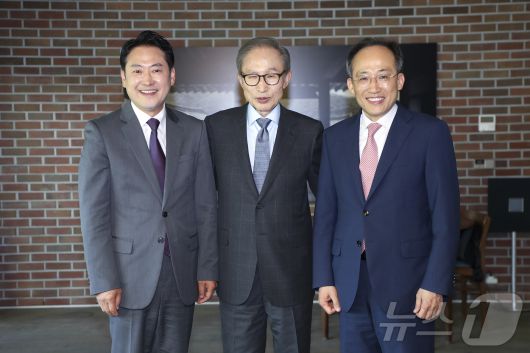 2024년 5월 31일 당시 국민의힘 추경호 원내대표와 장동혁 원내수석대변인이 서울 강남구 이명박 전 대통령 사저를 찾아 이 전 대통령을 예방하고 있다.(국민의힘 제공) 2024.5.21/뉴스1 ⓒ News1 구윤성 기자 |