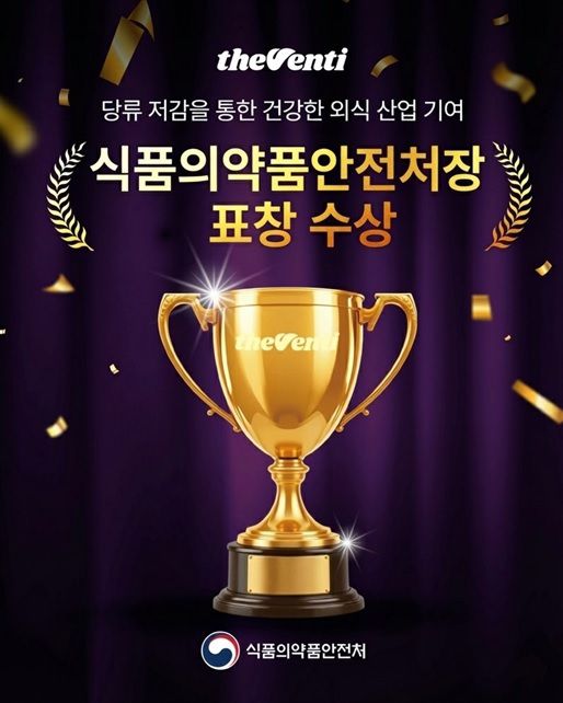 (서울=뉴스1) 배지윤 기자 = 더벤티는 식품의약품안전처에서 주관하는 25년 건강위해가능 영양성분 저감 유공 식품의약품안전처장 표창을 수상했다고 26일 밝혔다.
