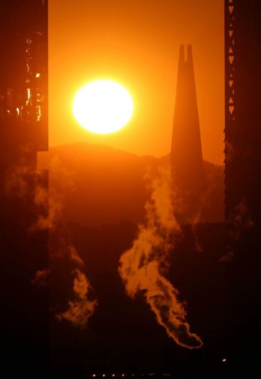 체감온도가 영하 20도까지 떨어지며 올 겨울들어 가장 추운 날씨를 보인 26일 서울 종로 한 건물에서 바라본 도심의 빌딩들이 난방을 가동하며 수증기를 내뿜고 있다.