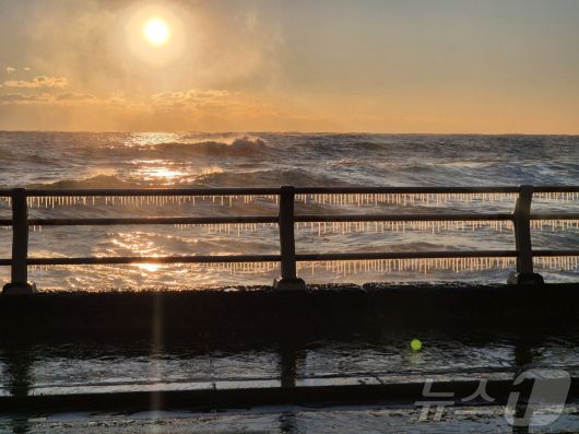 (강릉=뉴스1) 윤왕근 기자 = 강원 대부분 지역에 한파특보가 발효된 26일 동해안 대표 해안도로인 강릉시 강동면 심곡~금진 구간 헌화로 난간에 고드름이 매달려 있다. 2025.12.26/뉴스1