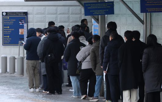 | 2025년 12월 5일 서울 종로구 주한미국대사관에서 미국 비자를 발급받으려는 시민들이 줄을 서고 있다. / 사진=연합뉴스 |