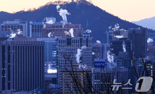 (서울=뉴스1) 김진환 기자 = 서울의 최저기온이 영하 12도까지 떨어지는 등 강추위를 보인 26일 오전 서울 도심의 빌딩에 난방을 가동하며 발생한 수증기가 피어오르고 있다. 기상청은 이날 경기북동부와 강원내륙·산지, 충북북부, 경북북부를 중심으로 아침 기온이 -15도 안팎으로 떨어지겠다고 예보했다. 2025.12.26/뉴스1