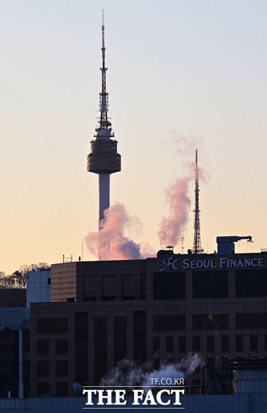 [더팩트ㅣ임영무 기자] 서울 기온이 영하 11도를 기록하는 등 전국 대부분 지역에 한파특보 및 한파주의보가 발효된 26일 오전 서울 종로구 정부서울청사 인근 빌딩에 난방 수증기가 피어오르고 있다.