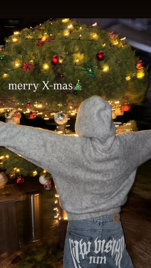 지난 25일 류다인은 자신의 계정에 크리스마스 인사를 남겼다. 그녀는 커다란 트리 앞에서 사진을 찍은 모습.