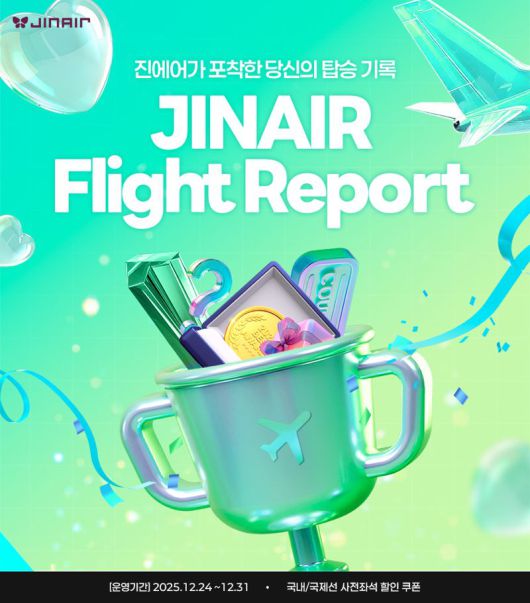 [파이낸셜뉴스] 진에어는 홈페이지 회원 대상으로 2025 연말 결산 어워즈 '진에어 플라잇 리포트'를 진행 중이라고 26일 밝혔다.