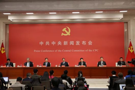 중국 공산당 중앙정책실 관계자들이 지난 10월24일 4중전회 결과를 설명하는 기자회견을 열고 있다. EPA연합뉴스 |