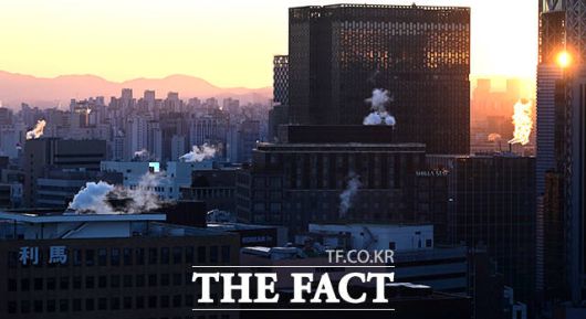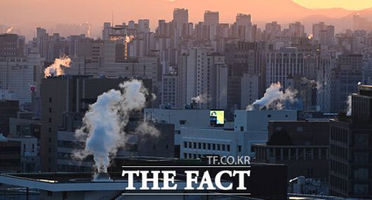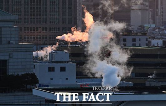 [더팩트ㅣ임영무 기자] 서울 기온이 영하 11도를 기록하는 등 전국 대부분 지역에 한파특보 및 한파주의보가 발효된 26일 오전 서울 종로구 정부서울청사 인근 빌딩에 난방 수증기가 피어오르고 있다.