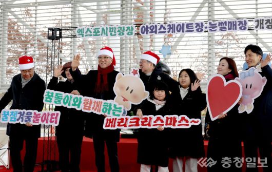 조원휘 대전시의회 의장(사진 왼쪽에서 세 번째)이 25일 엑스포시민광장에서 열린 2025 야외스케이트장 개장 행사에 참석해 시민들과 겨울 놀이터의 문을 열었다. 조 의장은 "차가운 계절일수록 이웃과 손을 맞잡고 즐길 수 있는 공간의 가치가 크다"며 "시민들이 안전하고 쾌적하게 여가를 누릴 수 있도록 의회 차원의 관심과 지원을 이어가겠다"고 밝혔다. 야외스케이트장은 내년 2월까지 52일간 운영된다. 국제 규격 아이스링크를 비롯해 눈썰매장과 민속썰매장 등 체험 시설이 마련돼 세대가 함께 즐길 수 있는 도심 속 겨울 공간으로 조성됐다. /대전=이한영기자