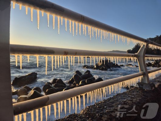 강원 대부분 지역에 한파특보가 발효된 26일 동해안 대표 해안도로인 강릉시 강동면 심곡~금진 구간 헌화로 난간에 고드름이 매달려 있다. 2025.12.26/뉴스1 ⓒ News1 윤왕근 기자 |