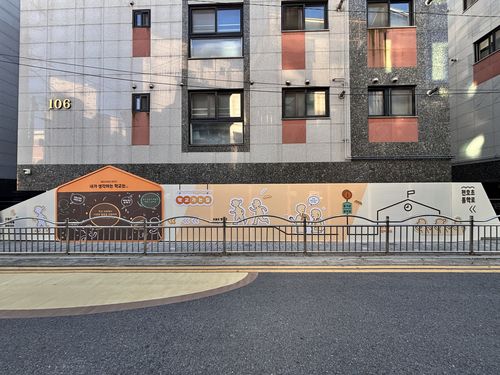 초등학교 담장은 학생들이 직접 참여한 디자인으로 새롭게 조성했다.