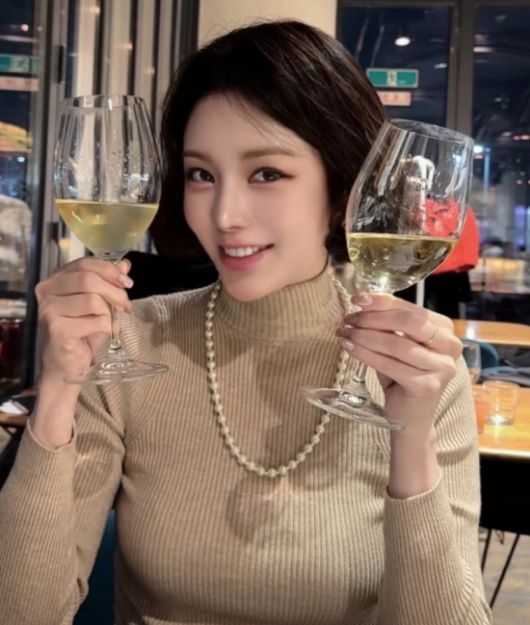리지는 와인잔을 양손에 들고 환한 미소를 짓거나 볼하트를 하는 등 다채로운 표정으로 사랑스러운 매력을 발산했다.