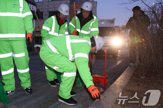 (서울=뉴스1) 신웅수 기자 = 장동혁 국민의힘 대표가 26일 서울 도봉구 일대에서 쓰레기를 정리하고 있다. 2025.12.26/뉴스1