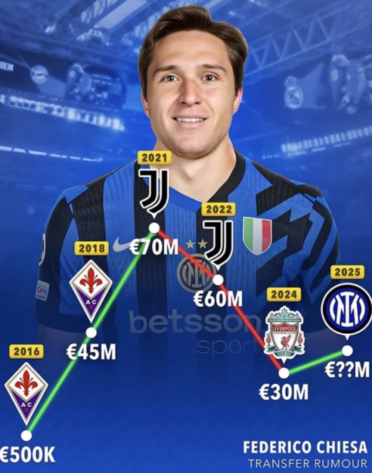 영국 '트리뷰나'는 25일(한국시간) 인터 밀란 소식을 밀착 취재하는 기자 알피오 무스마라의 보도를 인용하여 "인터 밀란은 며칠 뒤 개막하는 다음 겨울 이적시장을 앞두고 선수 보강을 검토하고 있다. 그중 한 명으로 거론되는 선수가 페데리코 키에사"라고 전했다.