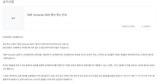 파업 강도는 단계적으로 높아졌다. 6월 초 야근과 주말근무 거부로 시작해 3일간 전면 파업을 거쳐 7월부터는 월수금 파업을 이어갔다. 8월에는 주5일 전면 파업으로 전환하며 최고조에 달했다. 급기야 던전앤파이터 20주년 기념행사 DNF 유니버스 2025가 취소되는 초유의 사태가 벌어졌다.