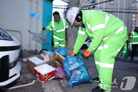 (서울=뉴스1) 신웅수 기자 = 장동혁 국민의힘 대표가 26일 서울 도봉구 일대에서 쓰레기를 정리하고 있다. 2025.12.26/뉴스1