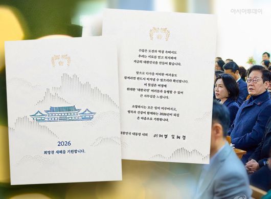 아시아투데이 목용재 기자 = 이재명 대통령은 취임 후 첫 연하장을 통해 "위대한 '대한국민' 여러분과 동행할 수 있어 큰 자부심을 느낀다"고 밝혔다.