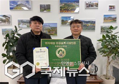 주상무 복지문화본부장(오른쪽)과 김종현 공원처장(왼쪽)이 북항친수공원 '셉테드(CPTED) 시설인증' 최우수 등급 동판과 인증서를 들고 기념촬영 하고 있다/제공=부산시설공단 |