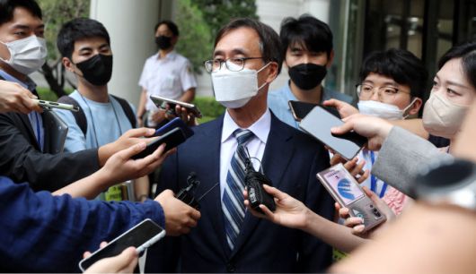 항소심에서 무죄를 선고 받은 정진웅 법무연수원 연구위원이 지난 2022년 7월 21일 오후 서울 서초구 서울고등법원에서 열린 ‘한동훈 독직폭행’ 혐의 관련 항소심 선고 공판을 마친 후 입장을 밝히고 있다. (사진=뉴시스) |
