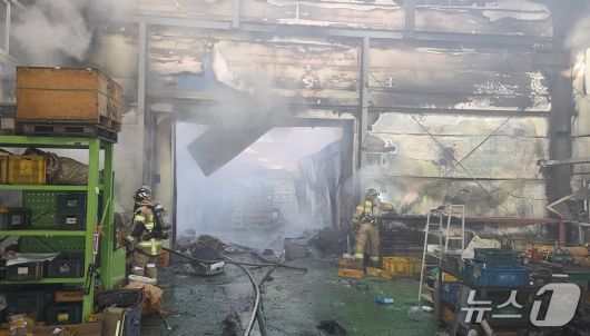 26일 오전 8시35분쯤 경북 경주시 현곡면의 공장에서 불이 나 소방 당국이 진화하고 있다.(경북소방본부 제공. 재판매 및 DB 금지)2025.12.26/뉴스1 |