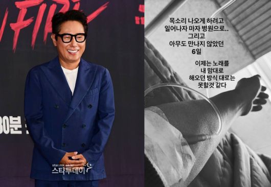 윤종신은 26일 자신의 사회관계망서비스(SNS)에 병원에서 링거를 맞고 있는 사진을 게재했다. 그는 “목소리를 나오게 하려고 일어나자마자 병원으로 갔다. 아무도 만나지 않았던 6일”이라며 근황을 전했다. 이어 “이제는 노래를 내 마음대로 해오던 방식대로는 못할 것 같다”고 덧붙이며 오랜 시간 쌓아온 무대 경험에도 불구하고 현재의 몸 상태에 대한 고민을 드러냈다.