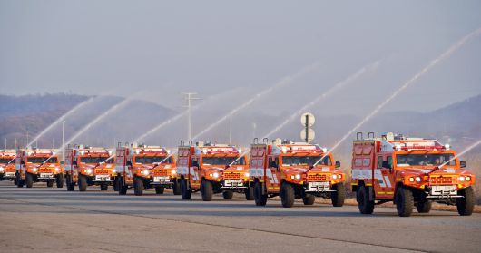 김인호 산림청장은 "다목적 산불진화차량은 차체와 특장의 93%를 국산화함으로써 수리와 부품 교체가 쉽고 비용까지 절감할 수 있을 뿐 아니라 임도 진입도 쉬워 산불 발생 시 초동 대응에 많은 도움이 될 것으로 기대된다"고 말했습니다.