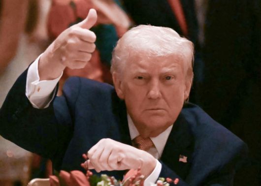 도널드 트럼프 미국 대통령이 24일(현지시간) 플로리다 팜비치의 마러라고 리조트에서 열린 성탄절 만찬에 참석해 엄지를 치켜들고 있다. AFP 연합뉴스 |
