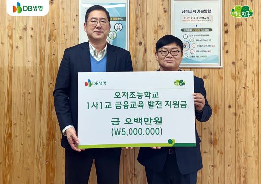 DB생명이 강원도 삼척시에 위치한 오저초등학교에 금융교육 발전 지원금 500만원을 전달했다고 26일 밝혔다.