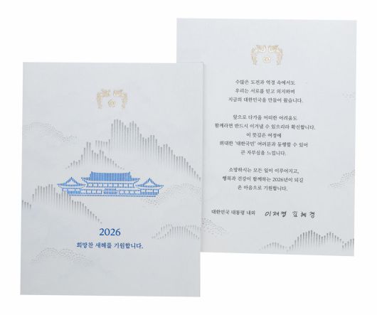 이 대통령은 연하장을 통해 “수많은 도전과 역경 속에서도 우리는 서로를 믿고 의지하며 지금의 대한민국을 만들어 왔으며, 앞으로 다가올 어떠한 어려움도 함께라면 반드시 이겨낼 수 있다”고 전했다. 이어 “위대한 대한민국 국민과 이 뜻깊은 여정을 함께할 수 있어, 큰 자부심을 느낀다”고 적었다.