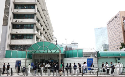 서울 종로구 미국대사관 앞에서 시민들이 비자를 발급받기 위해 줄 서 있다. (사진은 기사 내용과 무관함) /뉴스1 ⓒ News1 김민지 기자 |