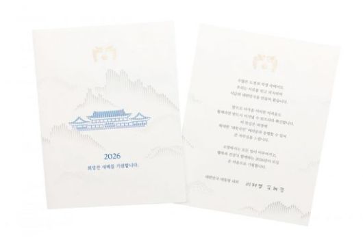 연하장에는 청와대와 주변 풍경을 전통 산수화 미감으로 표현한 그림을 넣어 국정 운영의 중심이라는 상징성을 담았다. 아울러 점과 선을 활용한 그래픽 기법으로 인공지능(AI)과 디지털 혁신을 기반으로 도약하는 대한민국의 미래상을 시각화했다고 대통령실은 설명했다.