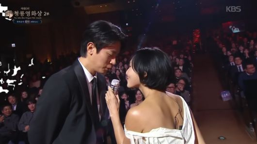 격변의 시대, 세상은 곳곳에서 뒤바뀌고 있습니다. 대중문화에서 그 역전의 순간을 포착해 사회·문화적 변화를 짚어 봅니다.박정민(왼쪽)과 화사가 지난달 열린 청룡영화상에서 '굿 굿바이'를 함께 부르고 있다. KBS 영상 캡처 |