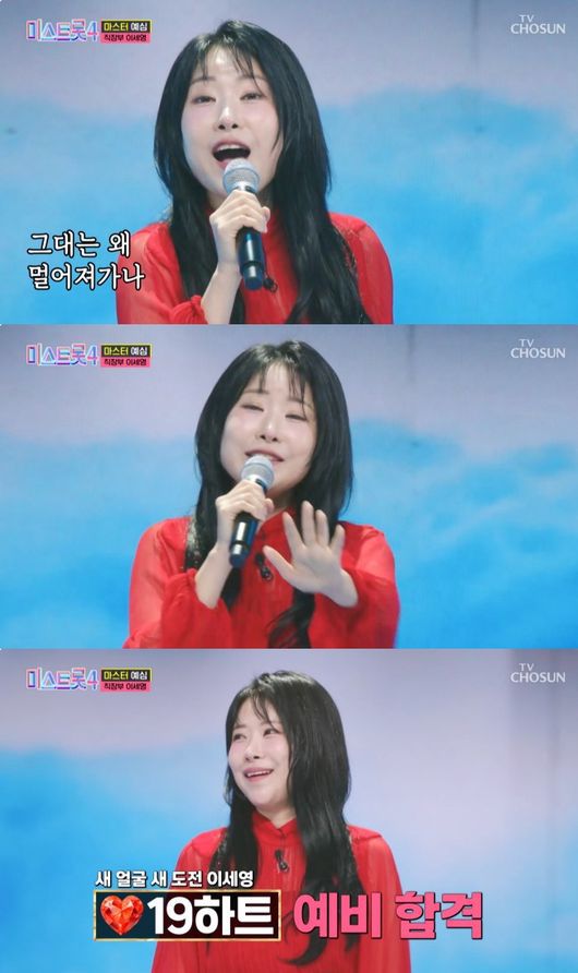 그러면서 이세영은 “방송 출연은 거의 3~4년 만이다. 지금 유튜브에서 키즈 유튜버로 활동 중이라 유소년부 친구들과 제일 처음 친해졌고, 사인도 많이 해줬다”라고 설명했다. 이세영은 이날 이지연의 ‘바람아 멈추어다오’를 불렀고, 국민 마스터 9하트, 선배 마스터 올하트를 받아 예비 합격했다.