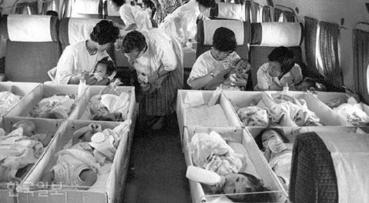과거 한국에서 해외로 입양가던 한국 아기들. 국가기록원 제공 |