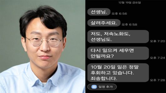 정 박사는 문자에서 "살려주세요", "저도, 저속노화도, 선생님도", "다시 일으켜 세우면 안 될까요?" 같은 표현과 함께 "10월 20일 일은 정말 후회하고 있습니다. 죄송합니다"라고 적었습니다.