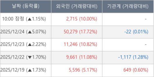 [표] 외국인ㆍ기관 순매매량 (단위 주)