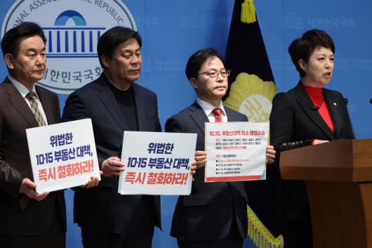 [헤럴드경제=양대근 기자] 서울 25개 자치구 전역과 경기 12곳을 토지거래허가지역·투기과열지구·조정대상지역으로 묶은 이재명 정부의 ‘10·15 부동산 대책’을 겨냥해 국민의힘이 행정소송 제기 등 본격적인 총공세에 돌입했다.
