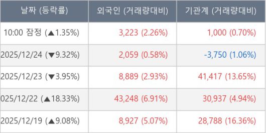 ※ 사모펀드 등 일부 기관의 순매매량은 표시되지 않음