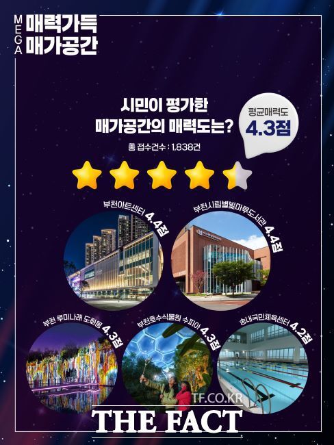 [더팩트|부천=김동선 기자] 경기 부천시는 시민이 직접 참여한 'MEGA(매가) 공간' 매력도 조사 결과 부천아트센터와 별빛마루도서관이 매력도 상위를 차지했다고 26일 밝혔다.