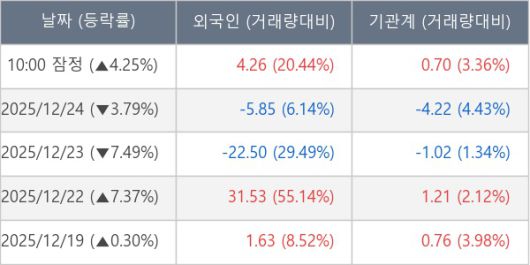 ※ 사모펀드 등 일부 기관의 순매매량은 표시되지 않음