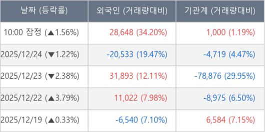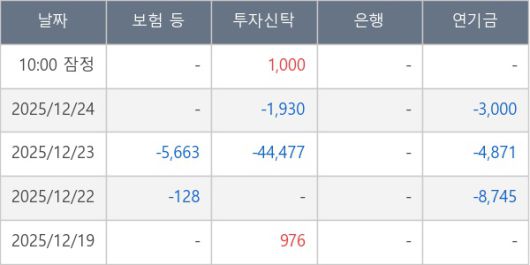 ※ 사모펀드 등 일부 기관의 순매매량은 표시되지 않음