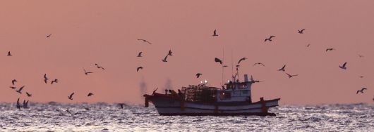 지난 23일 오전 부산 수영구 광안리 앞바다에 조업을 마무리 중인 어선 위로 갈매기들이 만선을 반기며 날갯짓하고 있다. /연합뉴스 |